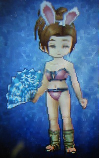 この装備手に入れるの苦労したんですよ。ビキニっぽい水着のほうは売り物の「あぶない水着」を錬金して「いけない水着」に。そしてさらに錬金を重ねて「きわどい水着」にしたのです。